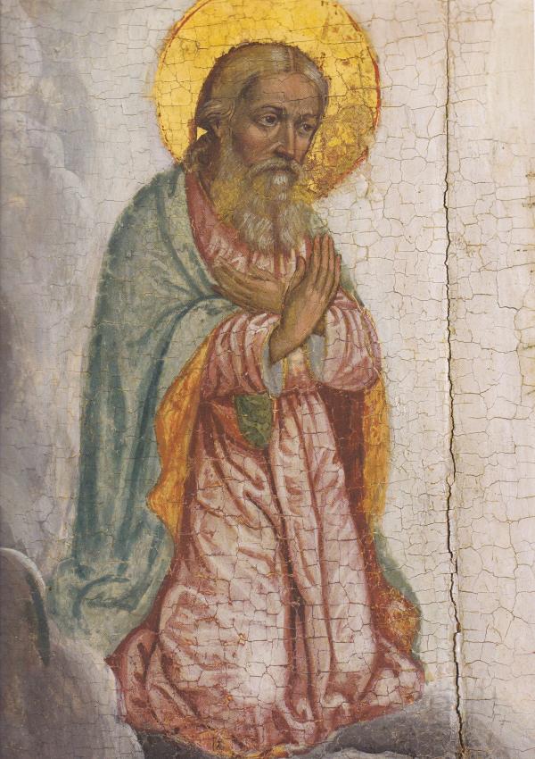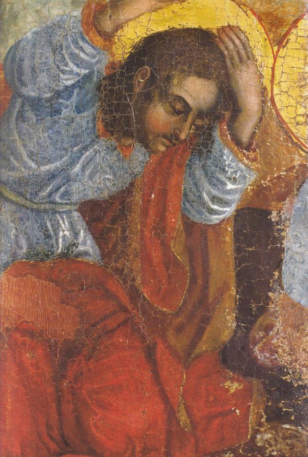Фігура євангеліста виконана у повен зріст. Лівою рукою він притримує розкриту книгу, права рука втрачена по лікоть. Євангеліст зображений у підперезаному хітоні та плащі, що перекинутий через ліве плече і спадає донизу. Одежі виконані зеленим лаком по сріблу. Худорляве аскетичне обличчя з гострим носом, близько розташованими очима – суворе і рішуче.
