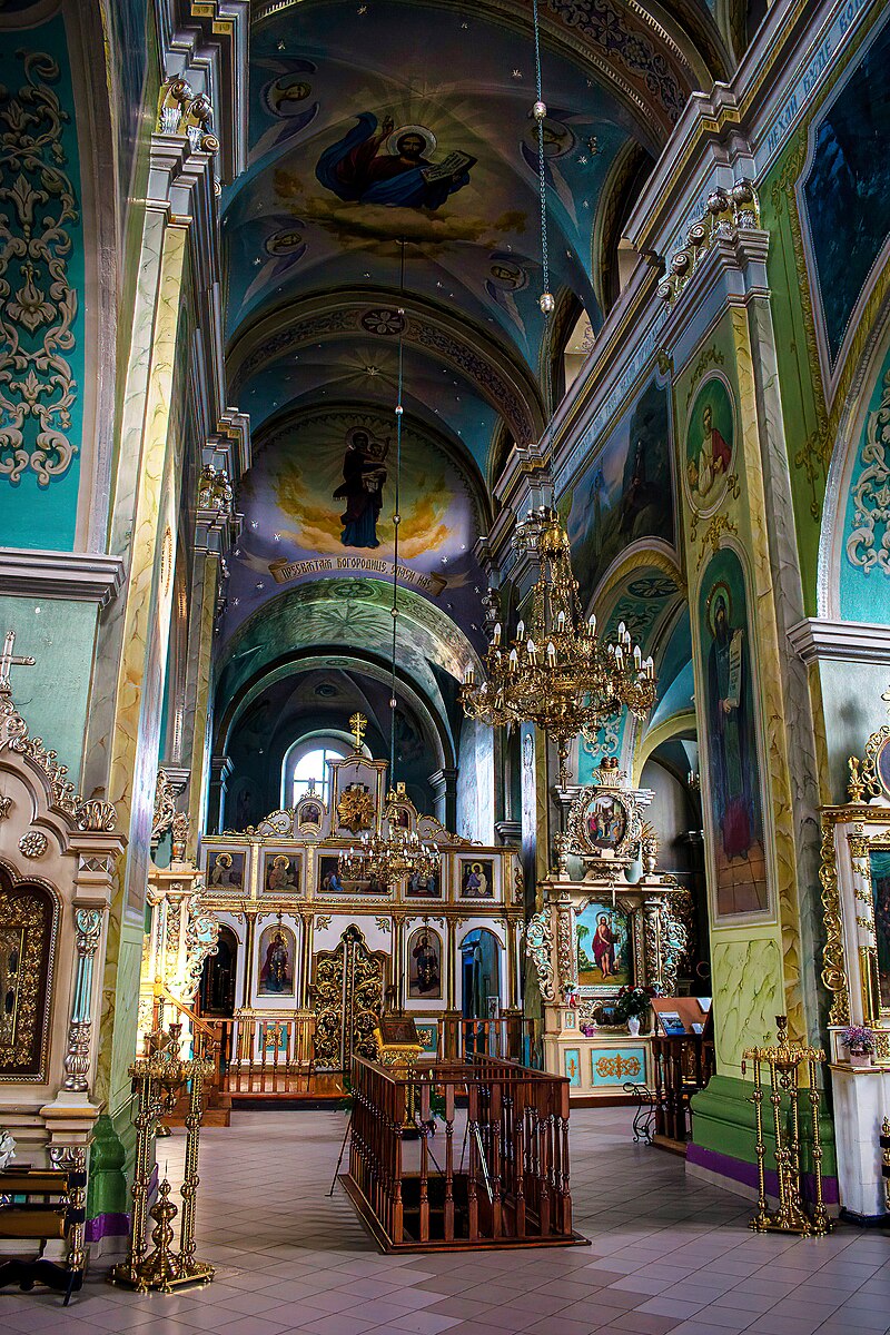 Іконостас з поч. XX ст., столярної роботи, триярусний, у формі трапеції виступає в наву, ікони академічного письма. Царські двері різьблені у вигляді листяних завитків із квітами, з чотирма круглими клеймами євангелістів. З північного боку, перед іконостасом розташований окремий вівтар Пресвятої Богородиці-Замилування у пишній різьбленій і посрібленій рамі російського канонічного письма.