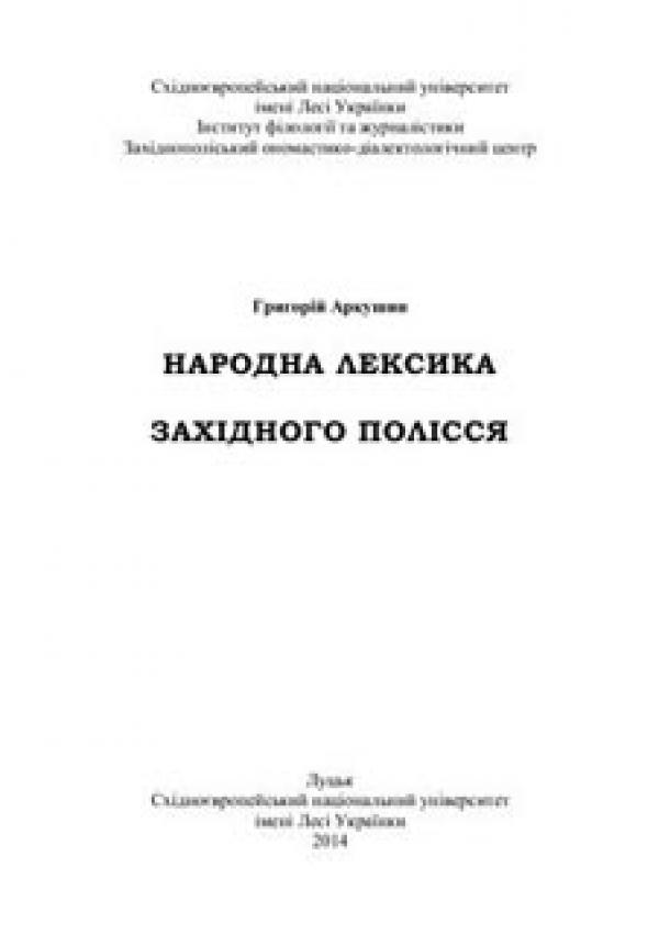 Аркушин Г. Л. Народна лексика Західного Полісся : монографія / Г. Л. Аркушин ; Східноєвропейський національний університет імені Лесі Українки, Інститут філології та журналістики, Західнополіський ономастико-діалектологічний центр. – Луцьк : Східноєвроп. нац. ун-т ім. Лесі Українки, 2014. – 236 с.