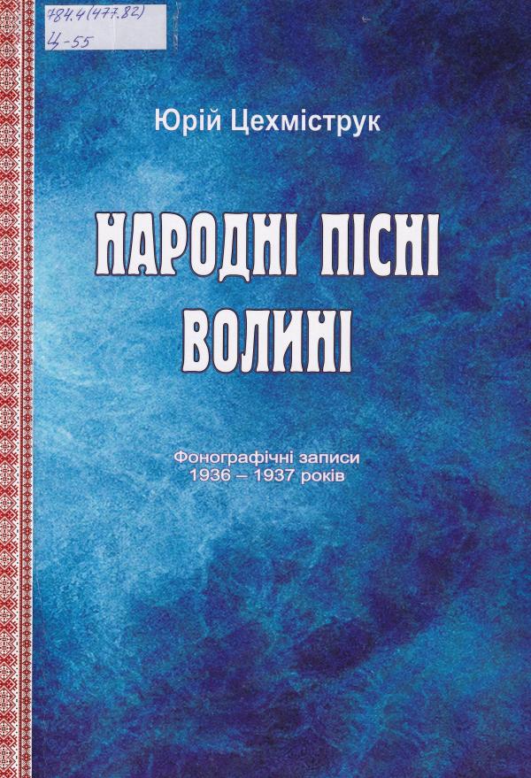 Цехміструк Ю. Народні пісні Волині : фоногр. записи : 1936–1937 р. / Ю. Цехміструк. – Рівне : О. Зень, 2025. – 400 с. : іл.