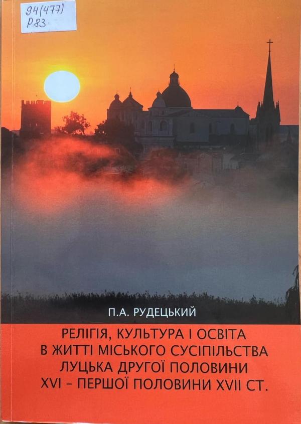 Рудецький П. А. Релігія, культура і освіта в житті міського суспільства Луцька другої половини XVI – першої половини XVII ст. : монографія / П. А. Рудецький ; Адмін. Держ. іст.-культур. заповідн. у м. Луцьку. – Луцьк : Вежа-Друк, 2024. – 220 с.
