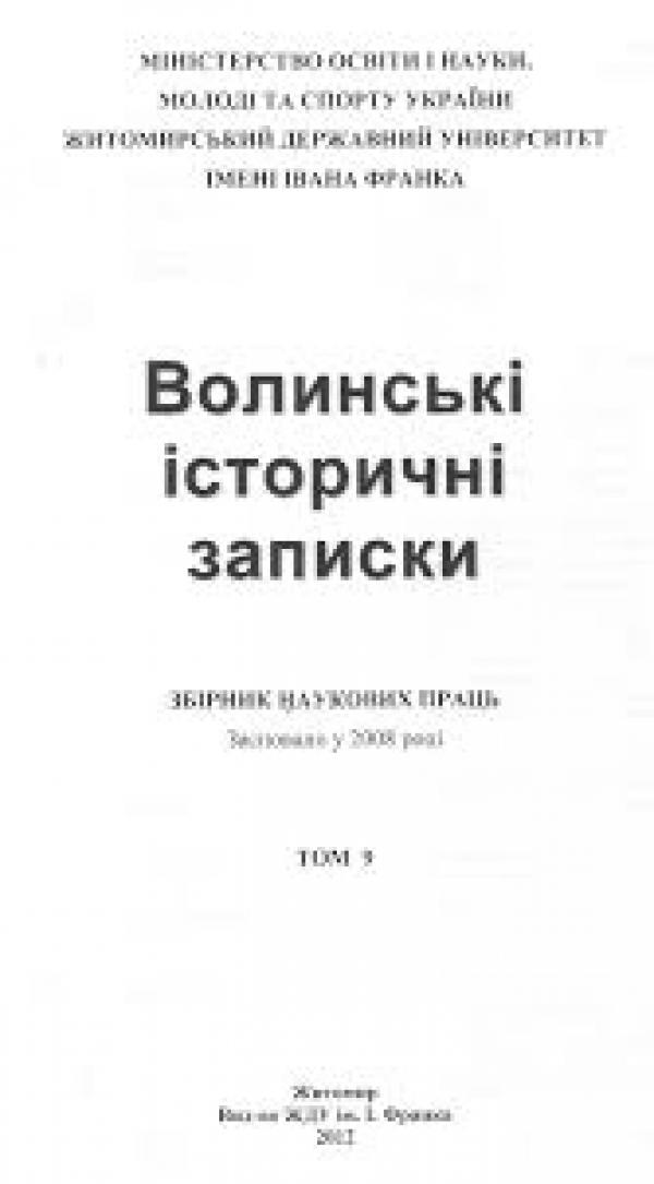 Анотація: Показано процес створення муніципальних й урядових органів влади в Західній Волині за Української Центральної Ради (УЦР), визначено їх структуру, юридичний статус та компетенцію, партійний й соціальний склад; з’ясовано регіональну суспільно-політичну ситуацію, встановлено ступінь її впливу на діяльність визначених органів влади, розкрито практичну сторону й оцінено результати цієї діяльності в означеному регіоні.