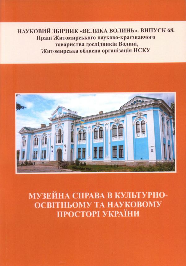 Музейна справа в культурно-освітньому та науковому просторі України : науковий збірник «Велика Волинь» : праці Житомирського науково-краєзнавчого товариства дослідників Волині, Житомирської обласної організації НСКУ. Вип. 68 : Матеріали Всеукраїнської наук.-краєзн. конф. присвяченої 160-річчю від заснування Житомирського обласного краєзнавчого музею, 40-річчю Кмитівського музею образотворчого мистецтва імені Й. Д. Буханчука та 35-річчю Житомирського обласного літературного музею (24 жовт. 2025 р., Житомир) / упоряд. П. С. Скавронський. – Бердичів : Мельник М. В., 2025. – 526 с.