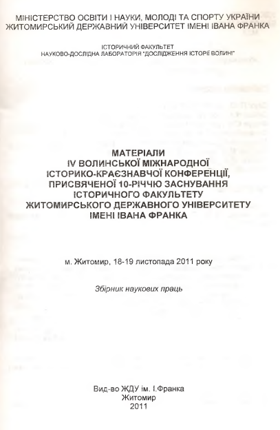 Бернацький В. Р. Православно-сектантські рухи на Волині – Житомирщині 20-х років ХХ століття в умовах більшовицького режиму