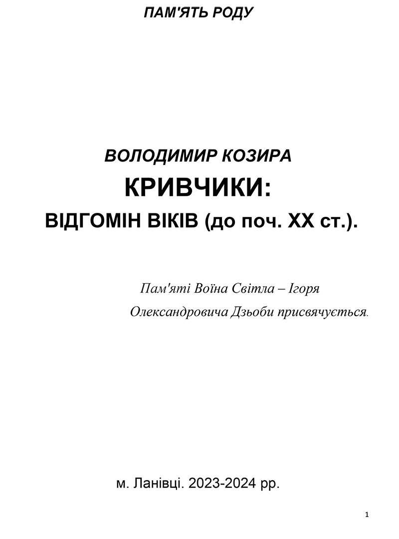 Козира В. Кривчики: відгомін віків (до поч. ХХ ст.)