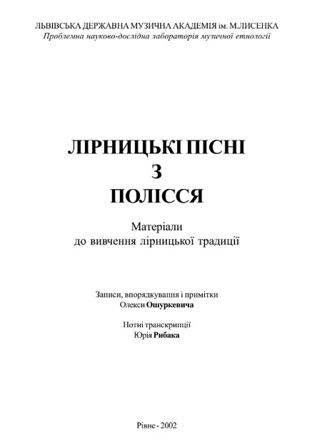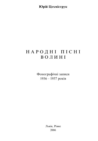 Цехміструк Ю. Народні пісні Волині: фонографічні записи 1936–1937 років