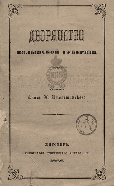 Имеретинский Н. Дворянство Волынской губернии